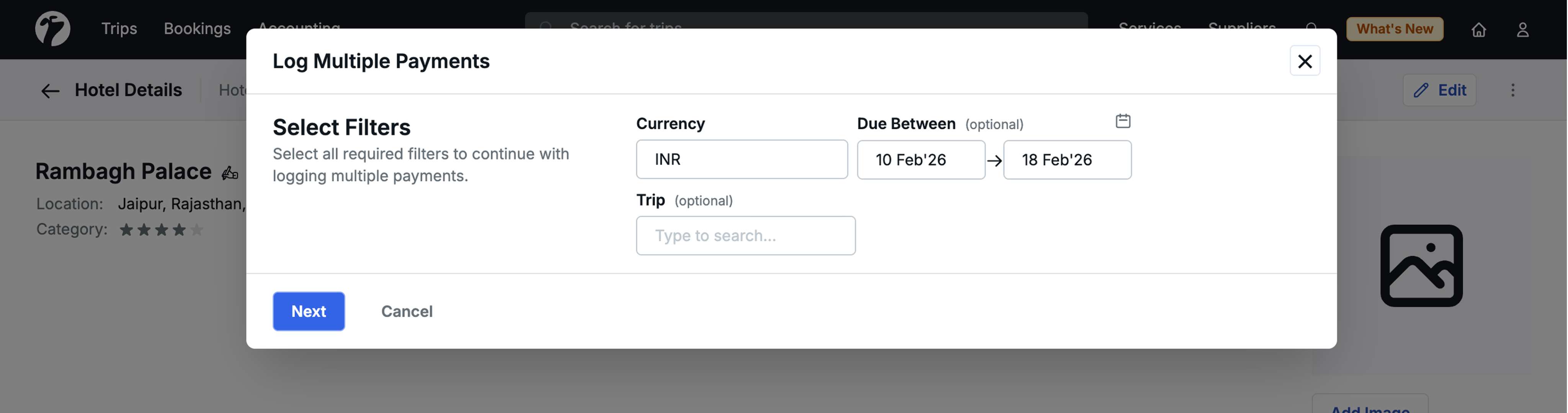We have introduced a Bulk Payment Clearance feature that allows you to log multiple payments in a single transaction, significantly reducing the time and effort required to process payments for suppliers and hotels.