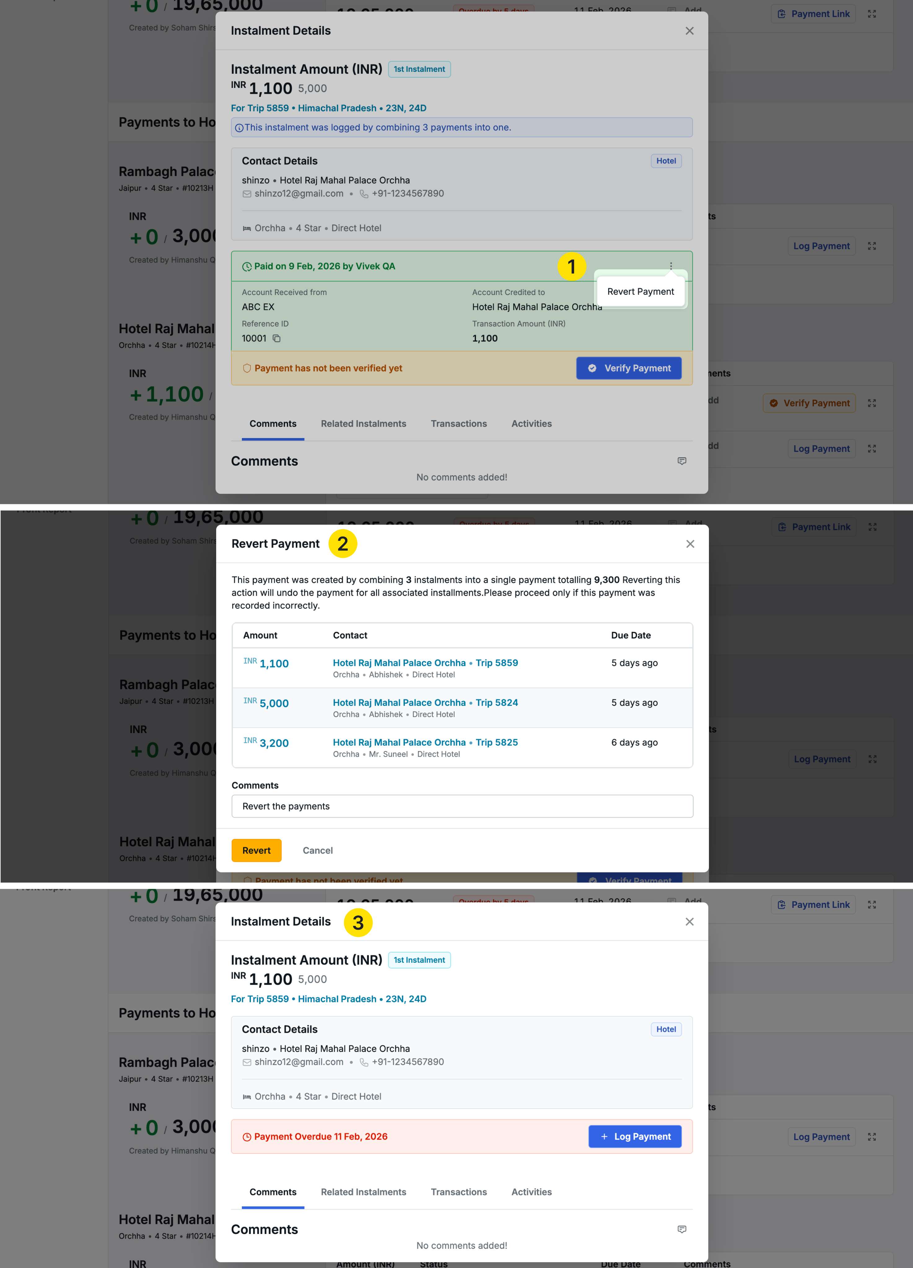 After logging bulk payments, you can verify, unverify, or revert them through the Installment Detail Page.