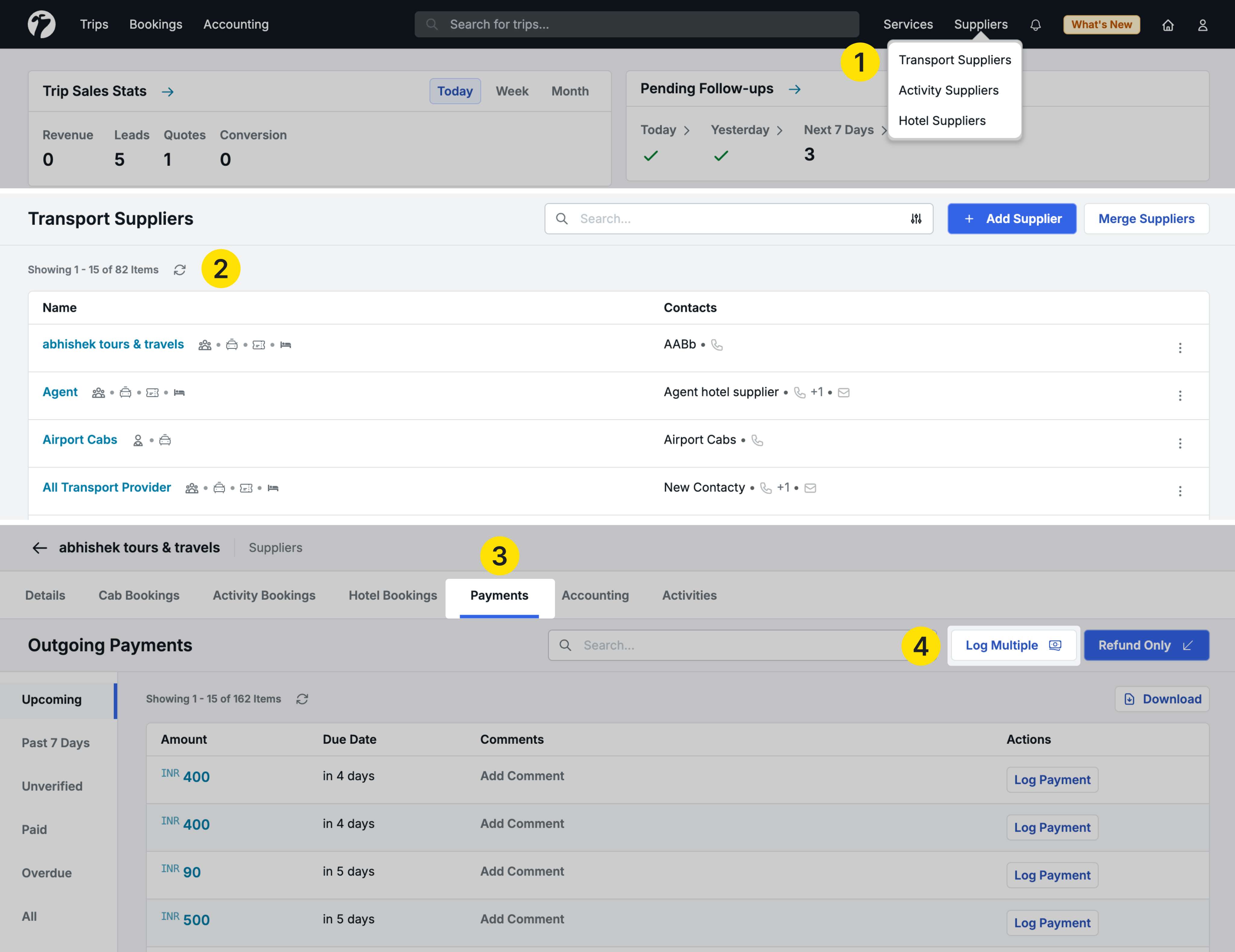 - Supplier Detail Pages → Payments tab (Transport, Activities, and Hotel Suppliers)