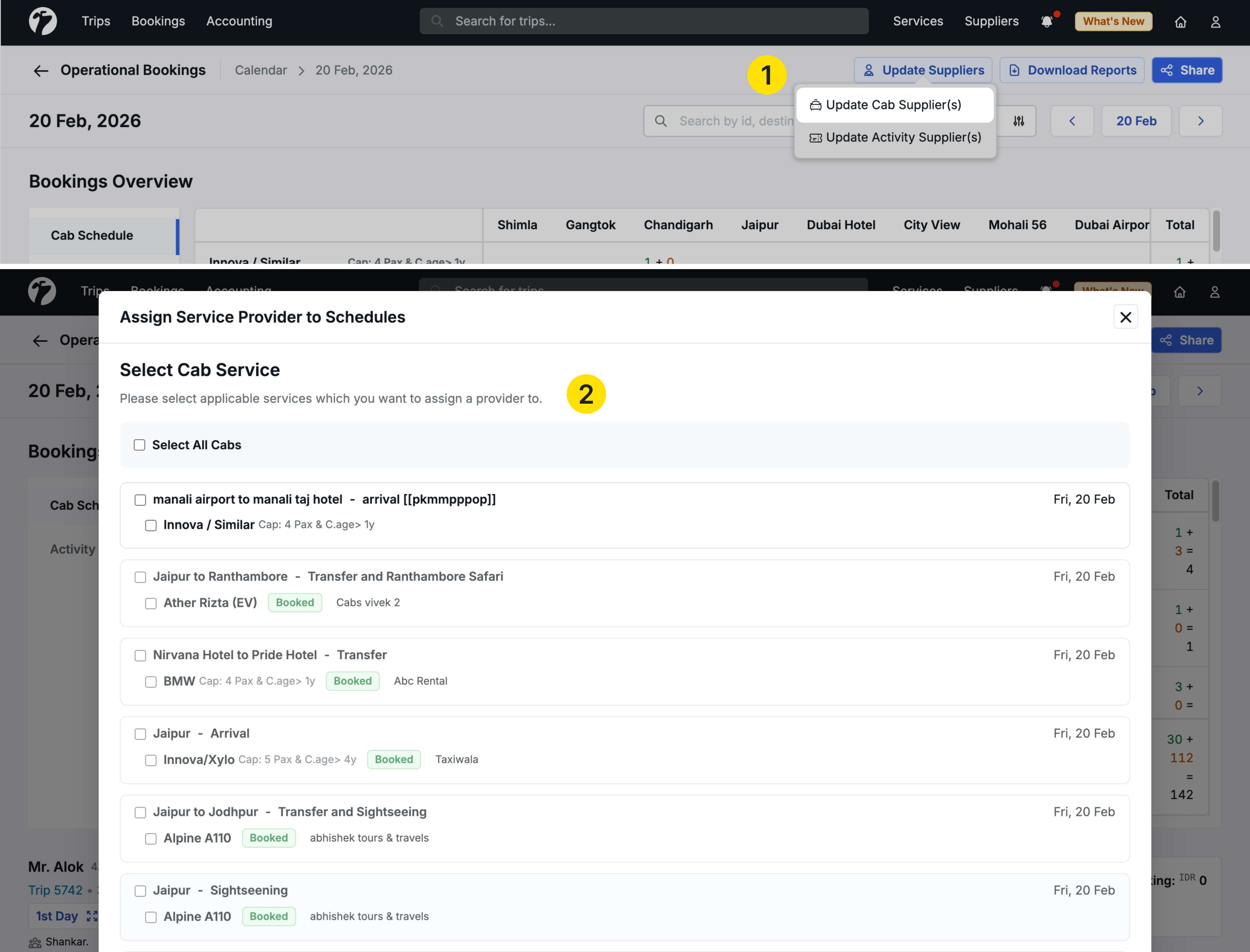- Operational Bookings → Select a day → Click on any transport or activity service